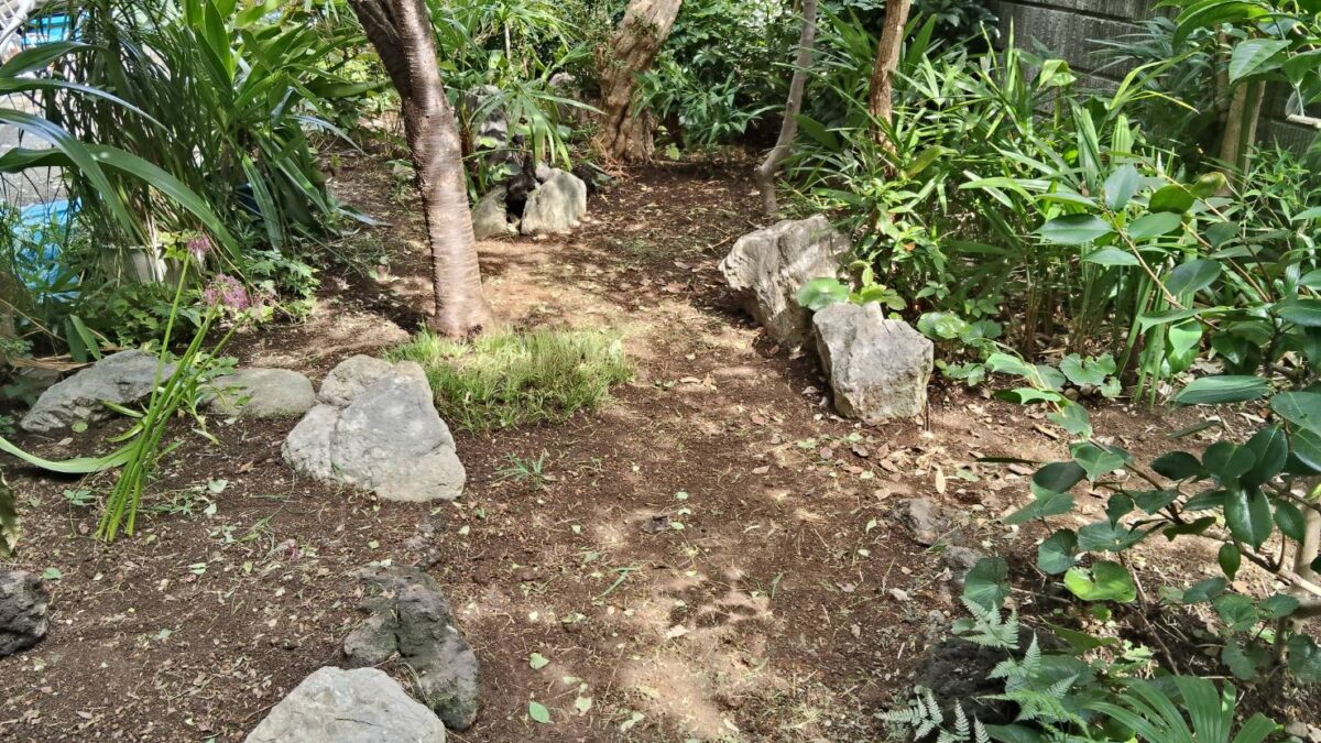 雑草が蔓延っていますね、ツワブキなどの下草も生えているので取ってはいけないものを分けて作業をします。